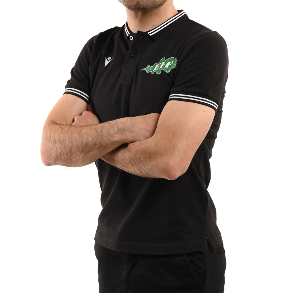 EIF’s piké t-skjorta i grönt eller svart av märket Macron. Material: bomull. Bröstet pryds av EIF’s eklövslogo.